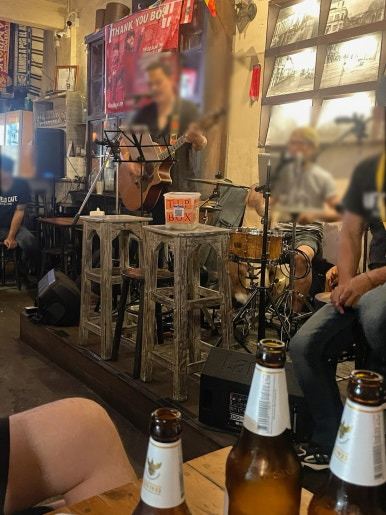 매장내부와 밖에서 맥주를 즐길 수 있으며 밴드가 노래를 불러 분위기를 한껏 띄운다.